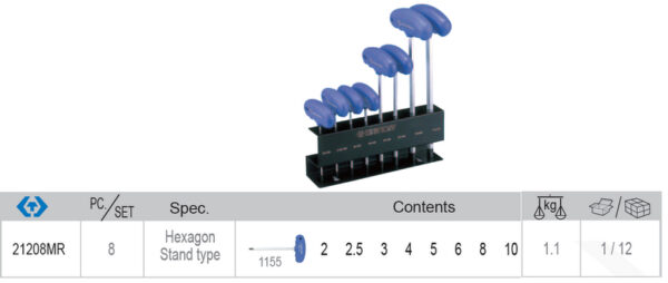 ZESTAW IMBUSÓW HEX Z UCHWYTEM L, 8SZT.,WKŁAD DO WÓZKA