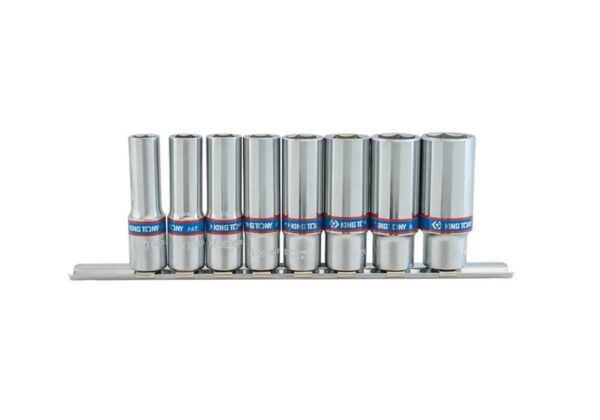 ZESTAW NASADEK 3/8” 8CZ. DŁUGIE 6-KĄT 10-19MM, NA SZYNIE