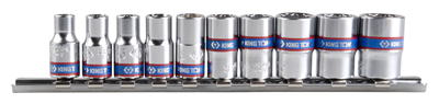 ZESTAW NASADEK 1/4, 9 CZ. KRÓTKIE 12-KĄTNE 5-13MM NA SZYNIE