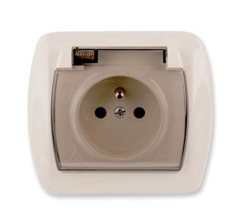 AKORD GNIAZDO 1-KROTNE Z/U IP44 Z KLAPKĄ DYMNĄ BEŻOWE
