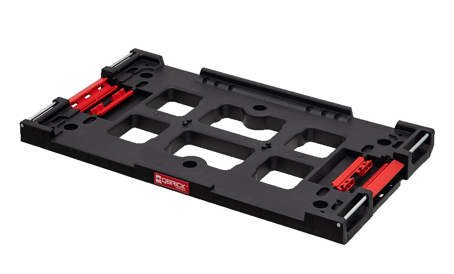 Dodatkowo, Adapter Multi po zamontowaniu do podłogi lub ściany samochodu, czy też warsztatu może być wykorzystywany jako stabilna płyta montażowa dla modułów Qbrick System z linii TWO i PRO. Dla większego bezpieczeństwa transportowanych modułów Adapter Multi posiada 4 stalowe uchwyty do montażu pasów zabezpieczających.