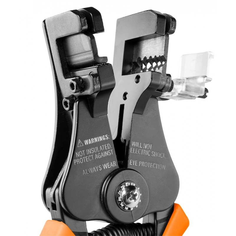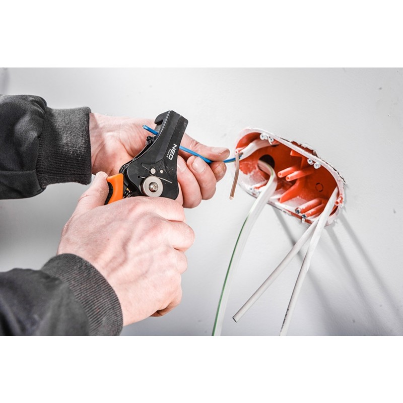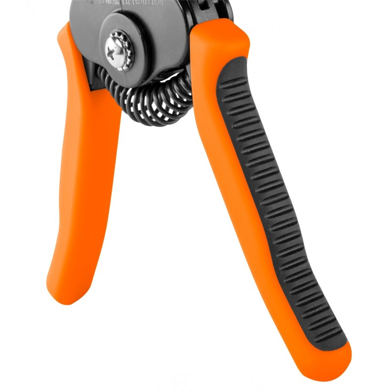 Automatyczny ściągacz izolacji NEO (nr ref. 01-520) o długości 175 mm, do przewodów o średnicy od 1 mm do 3.2 mm2. Posiada funkcję regulowania długości zdejmowanej izolacji. Szczęki wykonane z wysokogatunkowej stali szybkotnącej SK5 gwarantują trwałość i ostrość ściagacza.