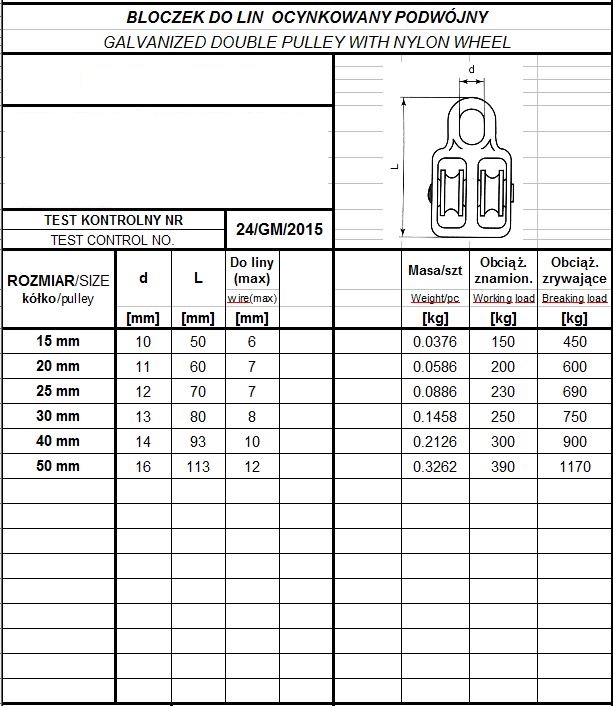 Nazwa: BLOCZEK DO LIN STAŁY PODWÓJNY 30MM