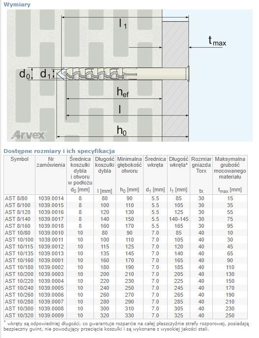 – natychmiastowa obciążalność i maksymalne bezpieczeństwo dzięki specjalnie opracowanej geometrii śruby i koszulki ,