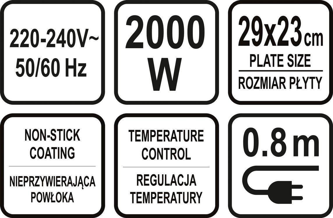 Moc: 2000W, 220-240V, 50/60Hz