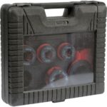 Zestaw zawiera 4 głowice wymienne o rozmiarach 3/8″ (10mm), 1/2″ (12,5mm), 3/4″ (19mm), 1″ (25mm).