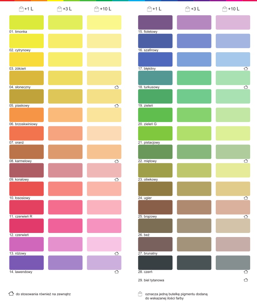 Koncentrat Pigment MIX nie zawiera żadnych żywic, glikolu etylenowego, metali ciężkich, lotnych związków organicznych (VOC) i alkilofenoli oksyetylenowanych (APEO).