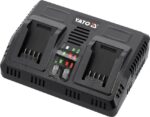 Szybka, podwójna ładowarka wszystkich akulmulatorów systemu 18 V YATO. Wbudowany system testowania sprawności akumulatora oraz temperatury dba o żywotność baterii. Nie podejmuje ładowania, kiedy ogniwa są zbyt rozgrzane. W przypadku baterii przechowywanej w ujemnej temperaturze rozpoczyna ładowanie, gdy bateria osiagnie temperaturę powyżej +5 stopni Celsjusza.