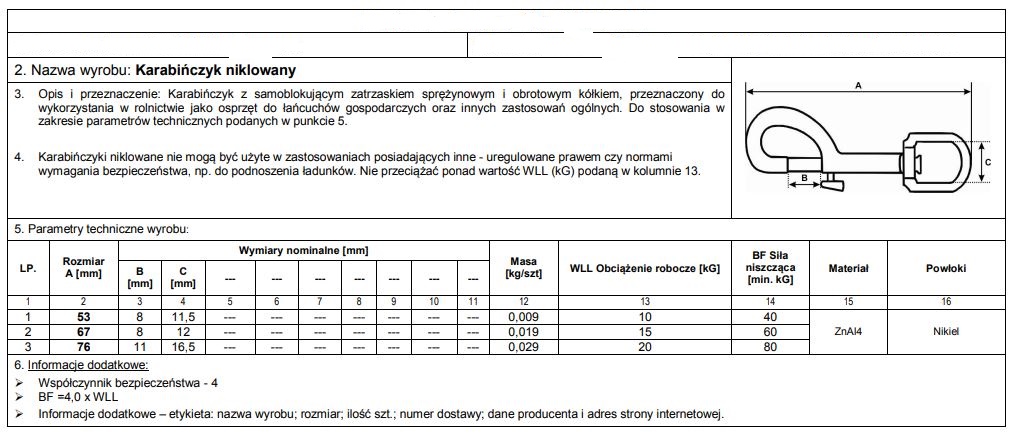 Nazwa: KARABIŃCZYK NIKLOWANY 67MM