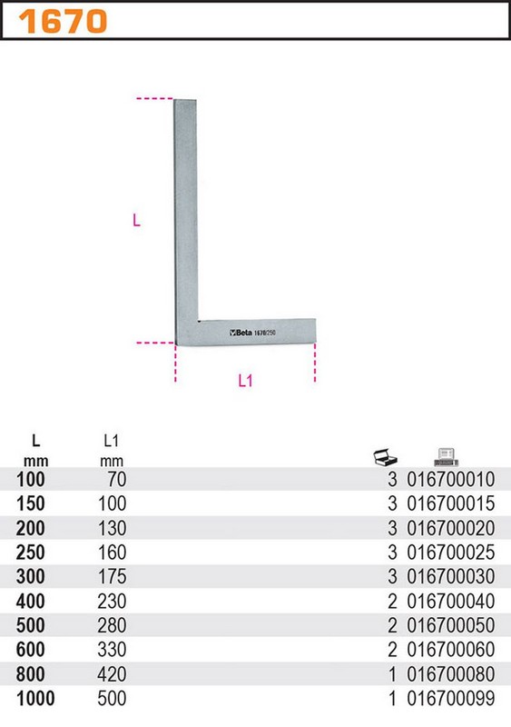 Kątownik powierzchniowy płaski, do prac niewymagających precyzji, model 1670, 200mm