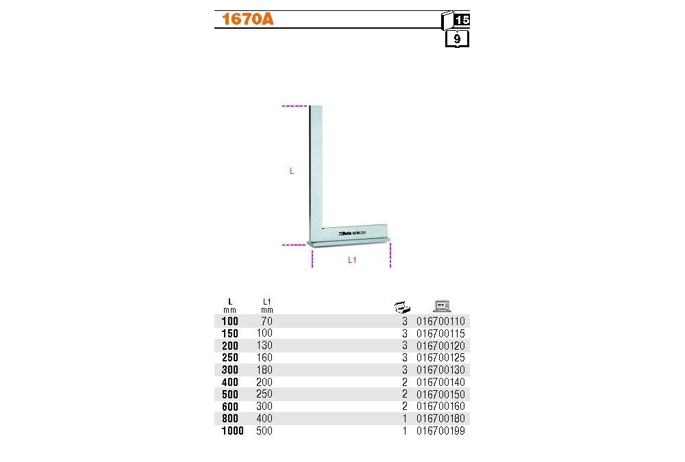 Kątownik powierzchniowy ze stopką, do prac niewymagających precyzji, model 1670a, 250mm