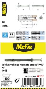 Kołek szybkiego montażu stożek PP 8*45 mm.