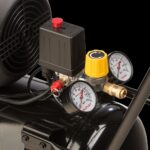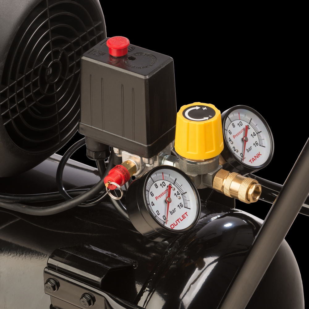 Zwiększone manometry usytuowane na kompresorze w pozycji ułatwiającej odczyt parametrów.