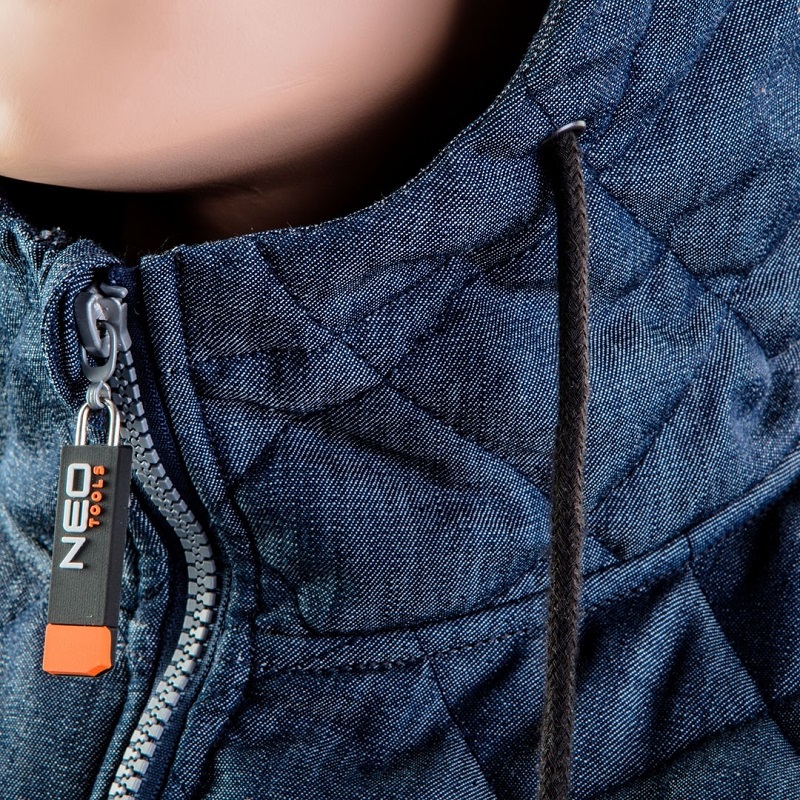 Kurtka robocza NEO lekka, ciepła i oddychalna. Strona wewnętrzna wykończona miękką podszewką. Zintegrowane ściągacze w dolnym szwie oraz przy wlocie rękawów pozwalają zachować ciepło, przy maksymalnym komforcie użytkowania. Kurtkę wyróżnia atrakcyjny wzór oraz zastosowany materiał – wytrzymały pikowany jeans – będący mieszanką bawełny z poliestrem. Lekkie, poliestrowe ocieplenie pozwala na używanie kurtki w chłodniejsze dni. Gwarantem jakości jest certyfikat europejski oraz wykonanie zgodne z normą EN ISO 13688:2013. Marka NEO spełnia oczekiwania profesjonalistów.