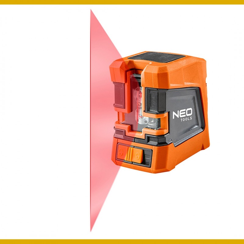 Laser krzyżowy samopoziomujący NEO o długości fali 630 – 670 nm znajduje zastosowanie przy pracach budowlanych i wykończeniowych.