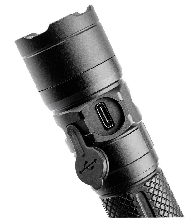 Wbudowane w korpus gniazdo do podłączenia kabla USB C jest odpowiednio zabezpieczone gumowa klapką przed czynnikami zewnętrznymi. Wygodna w użytkowaniu obudowa latarki wykonana jest z aluminium. Latarka polecana jest na różnego rodzaju wędrówki, survivalowe wycieczki lub z przeznaczeniem do domu.