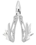 Zawiera: uniwersalne szczypce z ząbkowanymi i zaokrąglonymi szczękami oraz szczękami do przecinania drutu, brzeszczot, nóż mały, nóż duży, otwieracz do butelek, wkrętak płaski 3, 4, 8 mm, PH1, pilnik