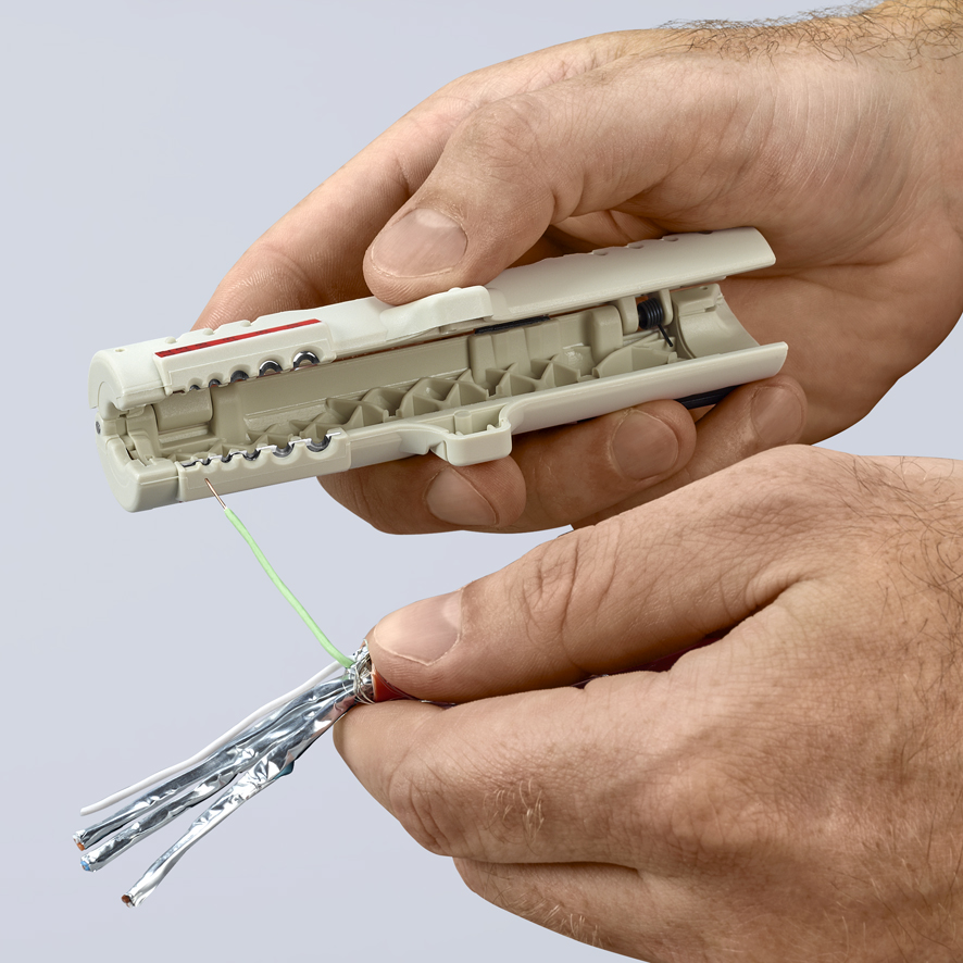 Do ściągania izolacji z kabli teleinformatycznych UTP + STP o średnicy O 4,5 – 10,0 mm