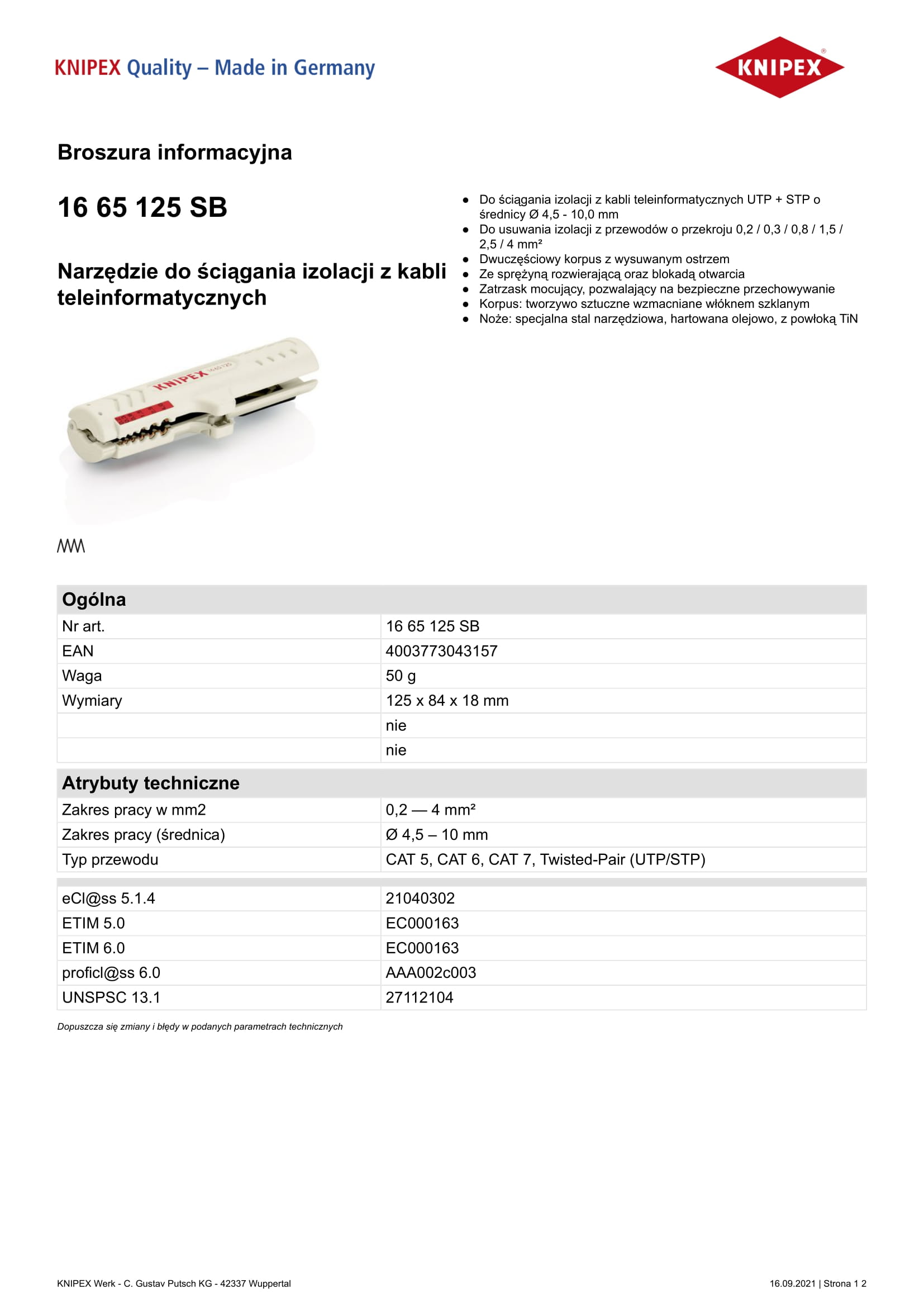 Nr art.: 16 65 125 SB