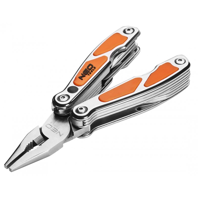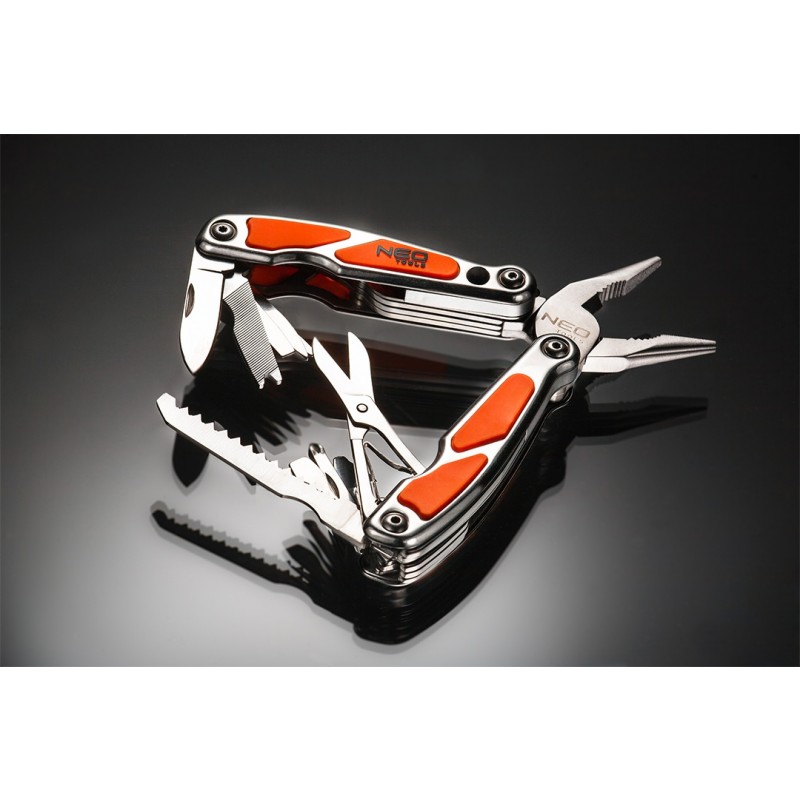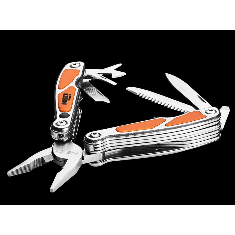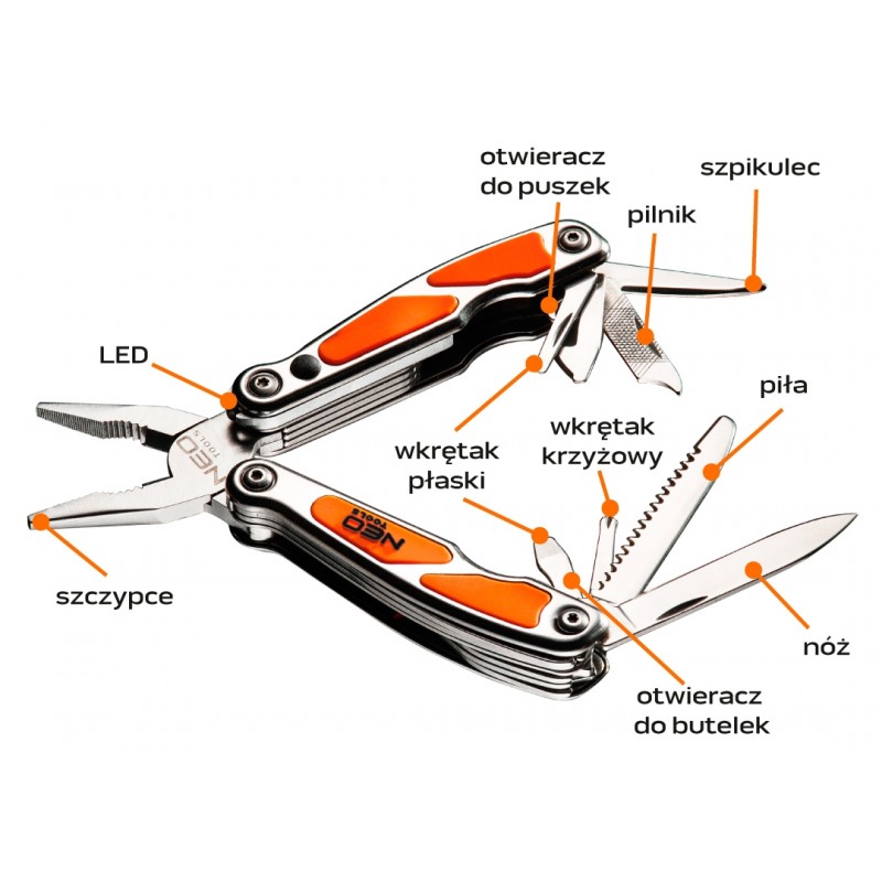 Narzędzie wielofunkcyjne NEO (nr ref. 01-027) to innowacyjne rozwiązanie. W jednym narzędziu znajduje się 10 różnych funkcji, m.in. najpopularniejszy wkrętak PH2, ostry nóż niezbędny w wielu sytuacjach oraz potrzebny na wielu kempingach otwieracz do puszek i butelek.