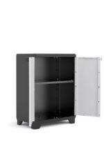 Kompaktowe wymiary niskiej szafy Linear sprawiają, że zajmuje ona niewiele miejsca, przez co doskonale sprawdzi się również w małych pomieszczeniach. Niska szafa Linear zaopatrzona została w ergonomiczne uchwyty zapewniające jej łatwe otwieranie i zamykanie. Kolejnym atutem prezentowanego modelu są otwory znajdujące się w uchwytach, umożliwiające zamknięcie szafki na kłódkę. Dzięki temu dodatkowo zabezpieczysz przechowywane środki chemiczne czy narzędzia przed dziećmi i zwierzętami domowymi. Wytrzymała konstrukcja gwarantuje bezpieczne i wieloletnie użytkowanie mebla.