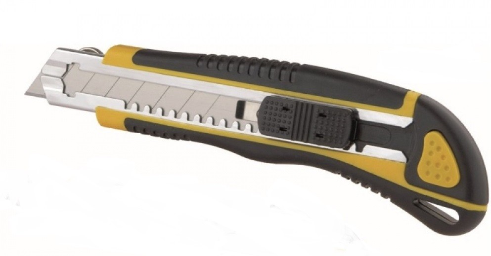 DEDRA M9030 Nóż techniczny z 5-ma ostrzami o szer. 18 mmCharakterystyka:Nóż techniczny do cięcia materiałów miękkich, takich jak papier, tektura, foliaPosiada wymienne, stalowe, łamane ostrze z prowadnicąBlokada ostrza w wybranej pozycji ułatwiają pracęGumowana rączka o ergonomicznym kształcie zapewnia pewność i dokładność cięciaZASTOSOWANIE:cięcie papieru, kartonu, folii itpDane techniczne:Ostrze szer. 18 mmWaga 0.15 kg