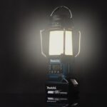 Akumulatorowe radio z wbudowaną lampą, zasilane akumulatorem 18 V Li-Ion.Urządzenie wyposażone jest w funkcję pamięci trybu – zapamiętuje ustawienia trybu świecenia w momencie wyłączenia. Posiada 2 tryby świecenia: latarnia (360°) oraz tryb latarni (3 strony), a także cyfrowy wyświetlacz LCD oraz cyfrowy wybór stacji radiowych. Osłona latarni, służy również za antenę.