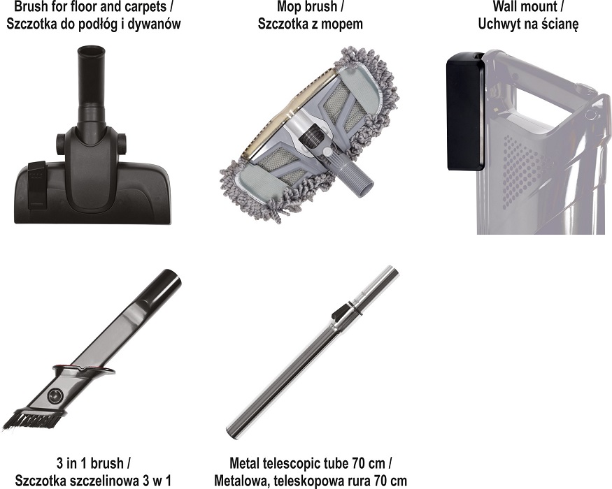 Uniwersalność – bogaty zestaw ssawek sprawdzi się w czasie odkurzania różnych powierzchni i zanieczyszczeń.