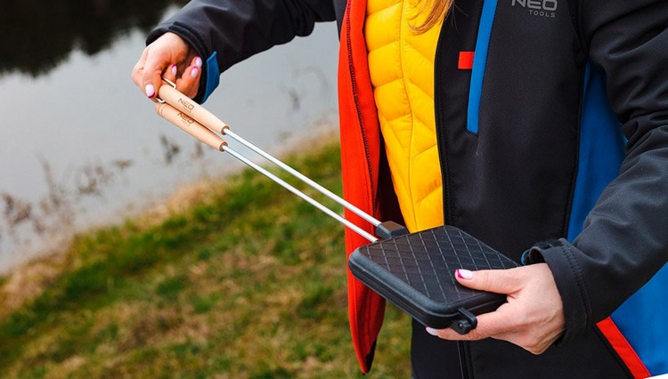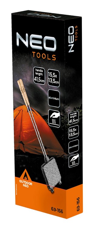 Długość pręta wynosi 41,5 cm i zapewnia odpowiednią odległość od ognia. Waga opiekacza to zaledwie 540 g. Produkt marki NEO sprawdzi się na kampingach oraz biwakach.
