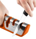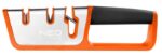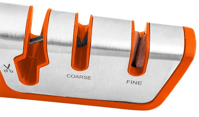 Ostrzałka do noży i nożyczek 56-053 marki NEO to narzędzie posiadające obudowę z odpornego na uderzenia tworzywa ABC, częściowo pokrytego stalą nierdzewną i gumą TPR. Oferuje dwustopniowe ostrzenie noży – wstępne z pomocą węglika wolframu nadającego kształt ostrzu oraz ostateczne polerujące ceramiczne. Umożliwia również ostrzenie nożyczek za pomocą specjalnej diamentowej ściernicy.