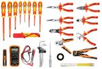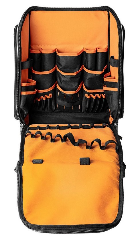 Plecak elektryka 31 elementów 01-313 marki NEO TOOLS to kompletny zestaw narzędzi składający się z 31 elementów. Plecak ma pojemność 20 litrów i jest wyposażony w 7 zewnętrznych kieszeni oraz 19 wewnętrznych kieszeni, co zapewnia wygodne przenoszenie i organizację narzędzi. Wykonany jest z wytrzymałego materiału polyester 600D. Jego wymiary to: szerokość – 370 mm, głębokość – 275 mm, i wysokość – 515 mm. Dodatkowo, plecak posiada gumowaną podstawę oraz sztywną ramę. W skład zestawu wchodzą narzędzia wykonane z wysokiej jakości materiałów, takie jak narzędzia z materiału CrV z dwukomponentowym uchwytem: szczypce uniwersalne izolowane (180 mm), szczypce boczne izolowane (160 mm), szczypce wydłużone proste izolowane (200 mm), szczypce wydłużone wygięte izolowane (200 mm), szczypce do ściągania izolacji izolowane (160 mm), oraz szczypce boczne izolowane (180 mm). Znajdują się tu także wkrętaki z materiału S2 z dwukomponentowym uchwytem w tym krzyżowe izolowane (PH0 x 60 mm, PH1 x 80 mm, PH2 x 100 mm, PH3