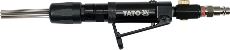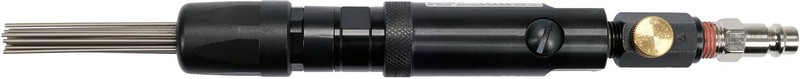 Mini młotek igłowy przeznaczony do czyszczenia rdzy, spawów i prac blacharskich. Kompaktowe rozmiary pozwalają na precyzyjną pracę w załomach. Zawór regulacyjny pozwala na dostosowanie częstotliwości uderzeń. Możliwość ustawienia kierunku wylotu powietrza zwiększa komfort pracy użytkownika.
