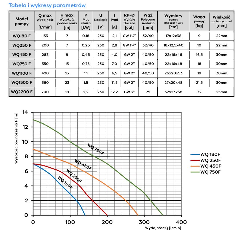 Pompa zatapialna WQ 2200 do wody szarej, opadowej, drenażowej, brudnej i ścieków ma szerokie zastosowanie, może z być stosowana zarówno w rolnictwie, agroturystyce i domach jednorodzinnych, jak i przedsiębiorstwach komunalnych czy w procesach produkcyjno-technologicznych. WQ 2200 jest przystosowana do pracy ciągłej w trudnych warunkach, posiada sterowanie pływakowe które steruje jej załączaniem się w zależności od poziomu pompowanego medium i chroni pompę przed pracą na sucho. WQ z powodzeniem może być stosowana jako pompa do opróżniania szamba, odwodnienia zalanych pomieszczeń, rowów melioracyjnych czy zbiorników ściekowych. Model ten często stosowany jest przez producentów przydomowych oczyszczalni ścieków potwierdzając tym samym jakość i trwałość naszych produktów.