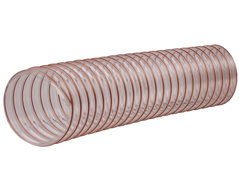 Lekki, przejrzysty wąż z poliuretanu zbrojony spiralą stalową pokrytą miedzią.
