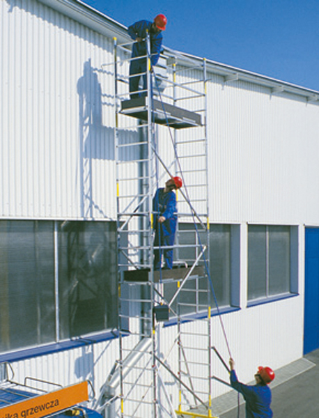 Mała masa rusztowania ze względu na aluminiową konstrukcję umożliwia łatwe przemieszczanie.