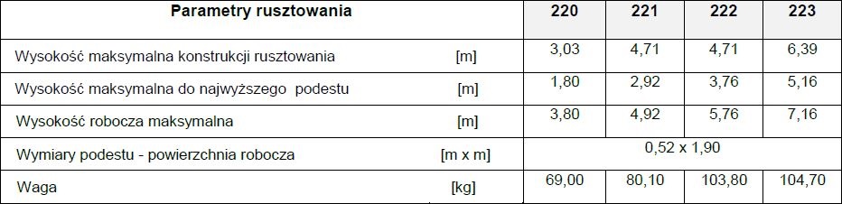Prosta obsługa, montaż i demontaż rusztowania (bez użycia narzędzi).
