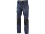 Męskie jeansy, pas ze szlufkami na pasek i zawieszką z tworzywa, wewnętrzna taśma przeciwślizgowa z gumy w pasie, 2 przednie kieszenie, 2 kieszenie z tyłu wykonane z materiału CORDURA, boczne kieszenie wielofunkcyjne, na prawej kieszeni szlufka na młotek, kolana wzmocnione poliestrem CORDURA z możliwością włożenia nakolanników.