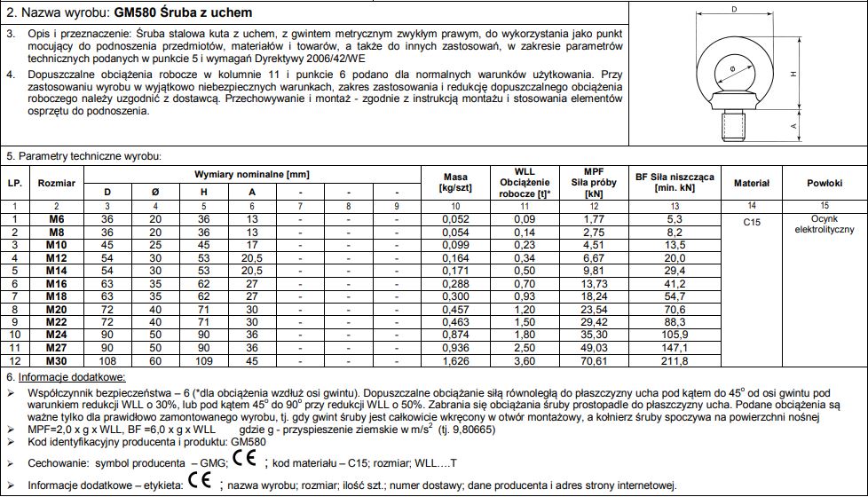 Nazwa: ŚRUBA Z UCHEM OCYNKOWANY DIN580 16*2MM