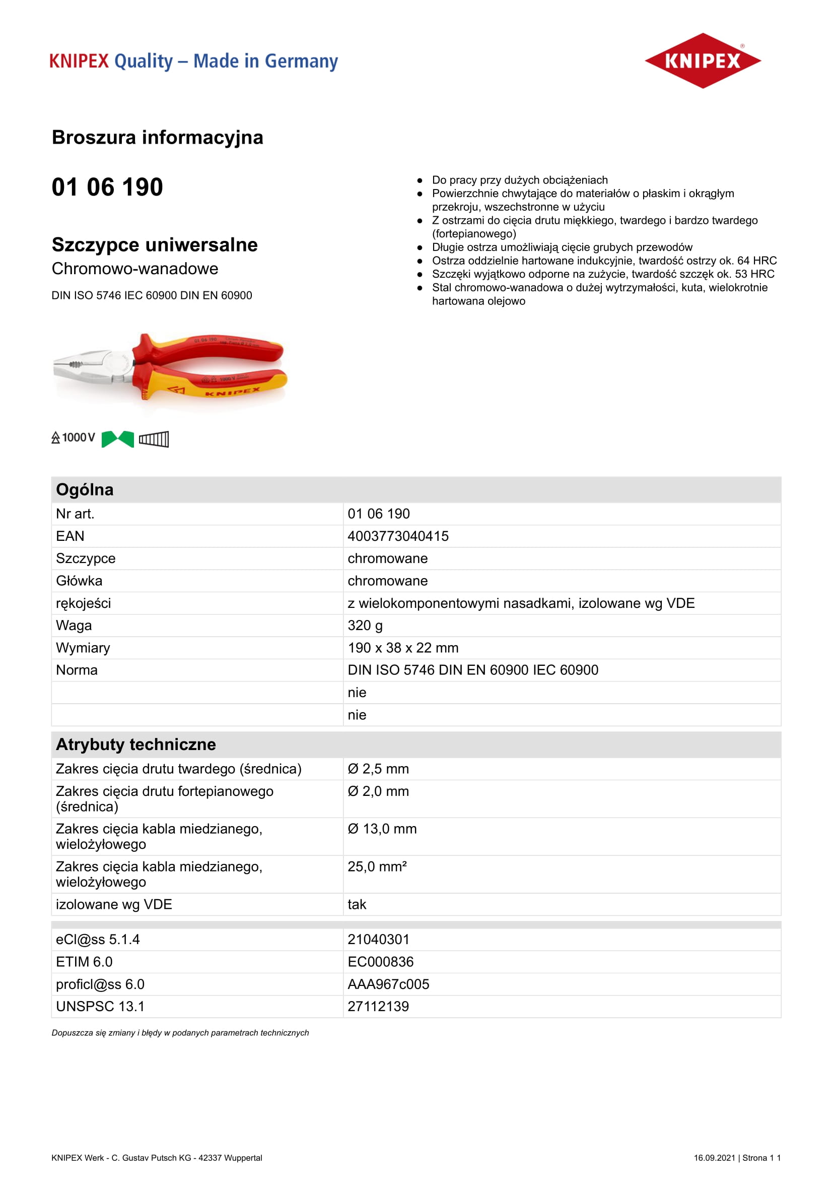 Zakres cięcia kabla miedzianego, wielożyłowego: 16,0 mm2