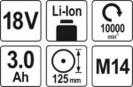 Wysokie obroty w klasie szlifierek akumulatorowych (10000/min) gwarantują szybkie cięcie o zasięgu szlifierek sieciowych