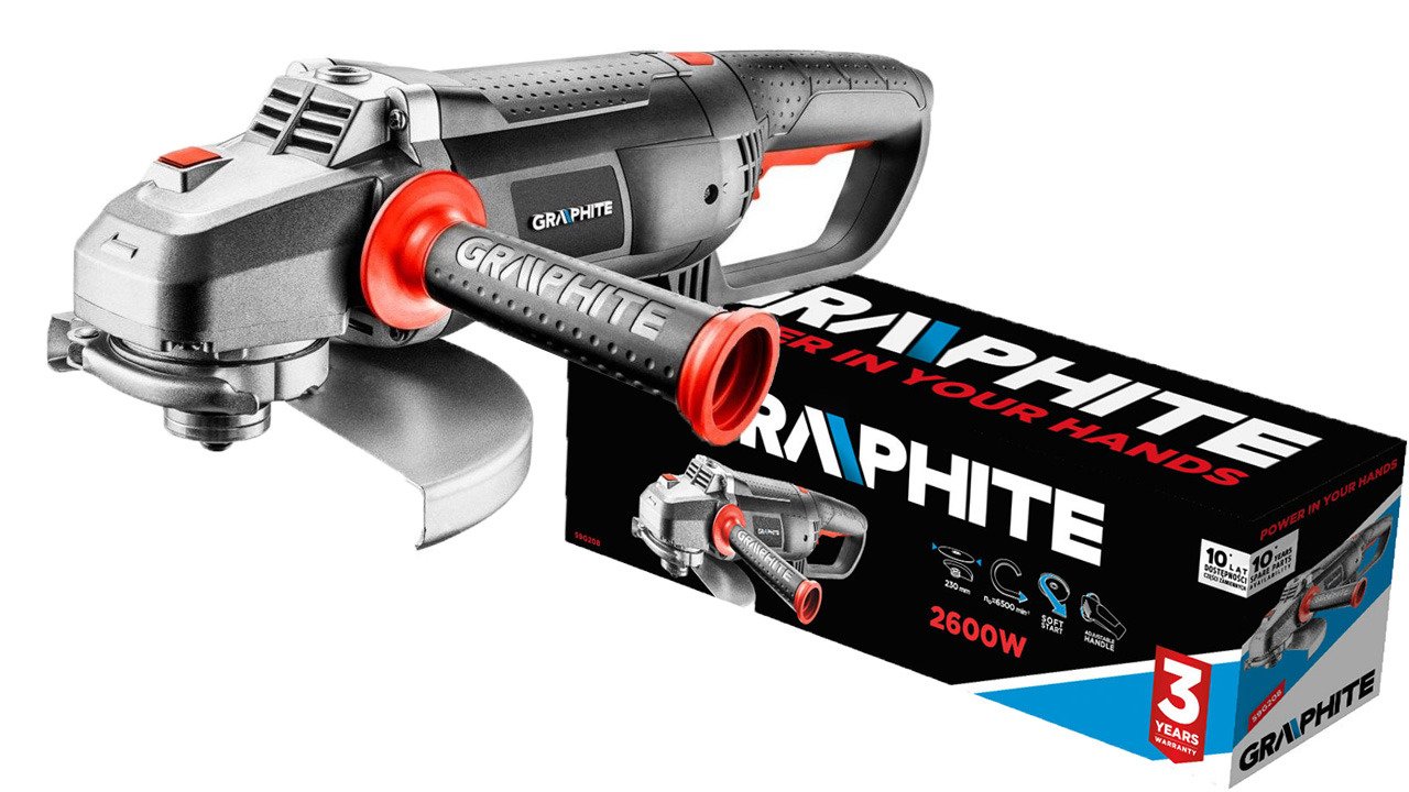 Wysokiej klasy szlifierka kątowa GRAPHITE z silnikiem o dużej mocy 2600 W,