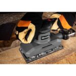 Ten model szlifierki wyróżnia się antypoślizgową, wygodną w użytkowaniu rękojeścią, systemem odprowadzania pyłu oraz możliwością szybkiej wymiany papieru ściernego.