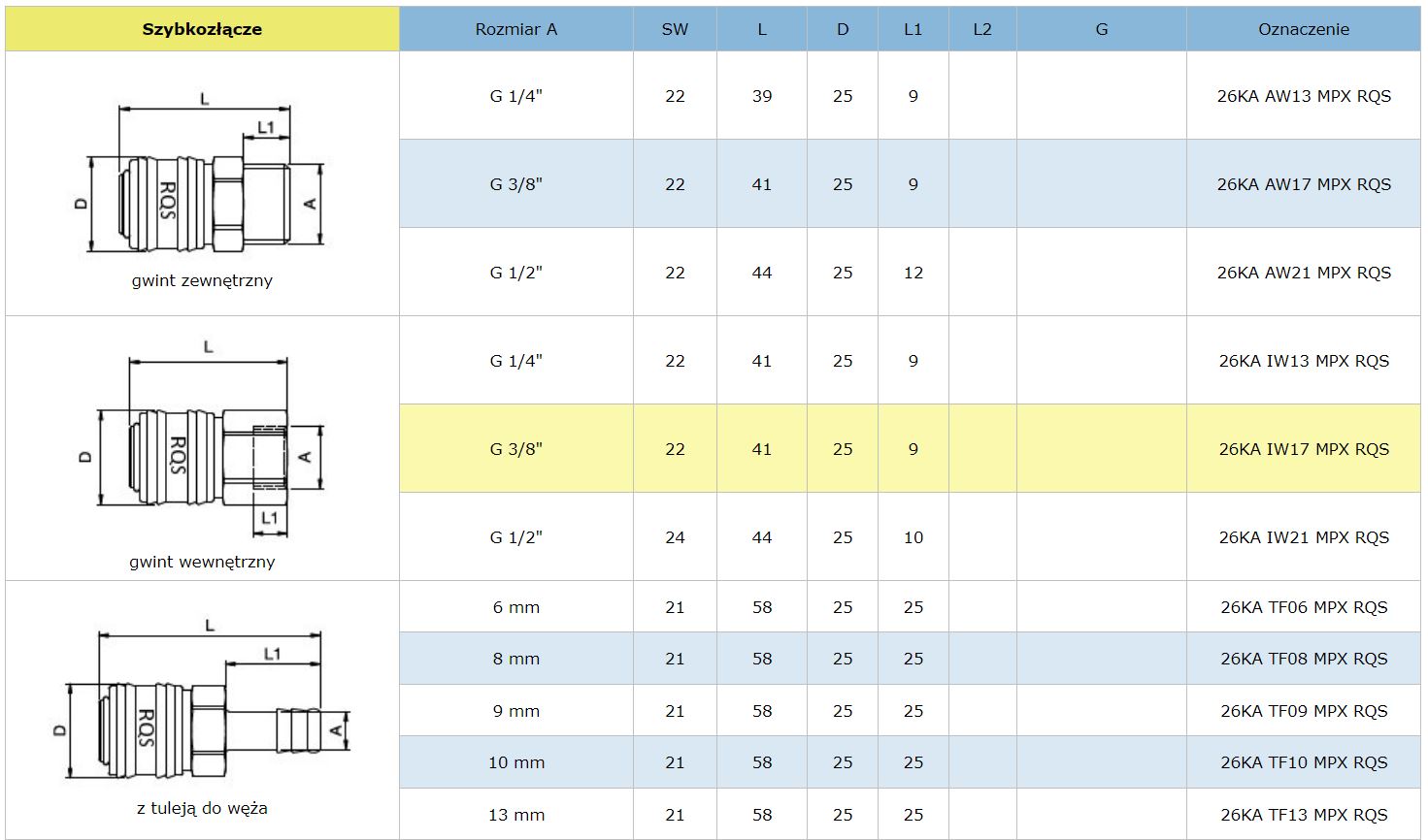 Nazwa: SZYBKOZŁĄCZE TYP 26 8MM RQS