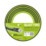 Wąż ogrodowy QUATTRO, dzięki zastosowaniu wysokiej jakości materiałów, cechuje się maksymalną wytrzymałością na ciśnienie wody wynoszące 20 bar, odpornością na promieniowanie UV oraz temperatury robocze w zakresie od -10°C do +50°C, dlatego można użytkować go przez wszystkie sezony. Wyróżnia go także odporność na osadzanie się glonów w jego wnętrzu.