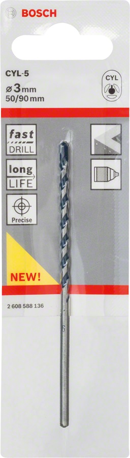 Wiertło CYL-5 cechuje się bardzo dużą trwałością podczas wiercenia otworów mocujących w betonie i kamieniu.