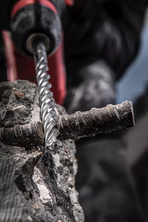 Geometria widii 4×90° gwarantuje doskonale gładkie otwory oraz redukuje ryzyko zakleszczenia się wiertła przy natrafieniu na pręt zbrojeniowy.