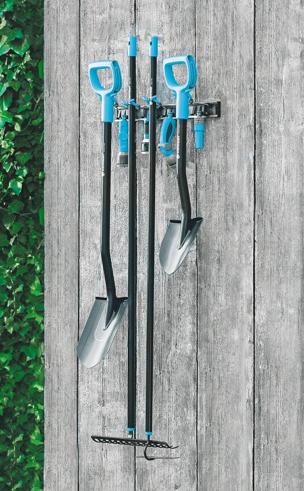 Cztery uchwyty samoblokujące pozwalają na powieszenie dowolnych narzędzi i akcesoriów, ich rozstaw można regulować zależnie od potrzeb, przesuwając w poziomie.