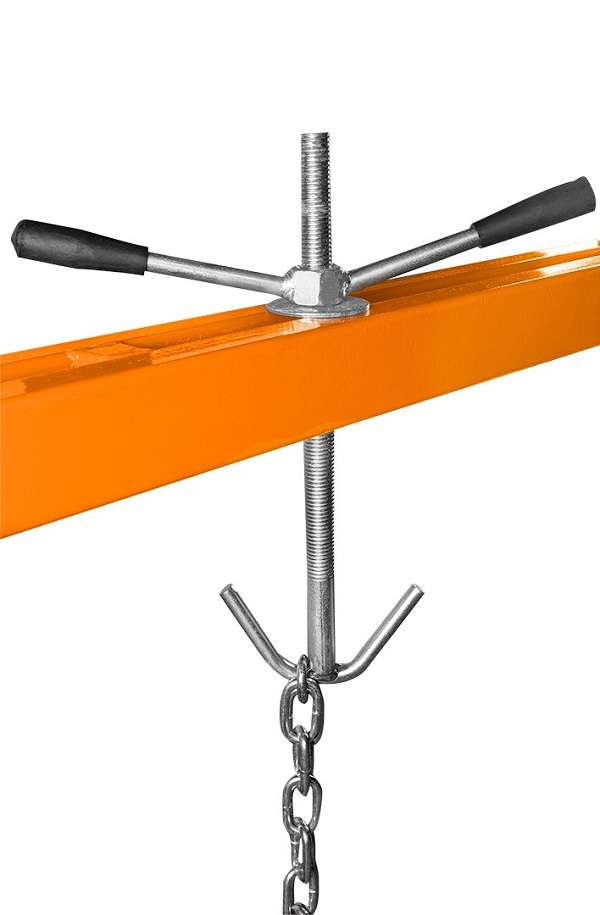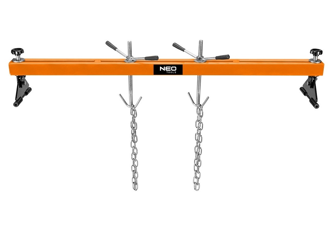 Wieszak na silnik NEO (nr ref. 11-749) o maksymalnym udźwigu 500 kg przeznaczony jest do podwieszania silnika. Posiada regulowane podpory i zaczepy, które umożliwiają dopasowanie do każdego samochodu. Wykonany jest ze stali.