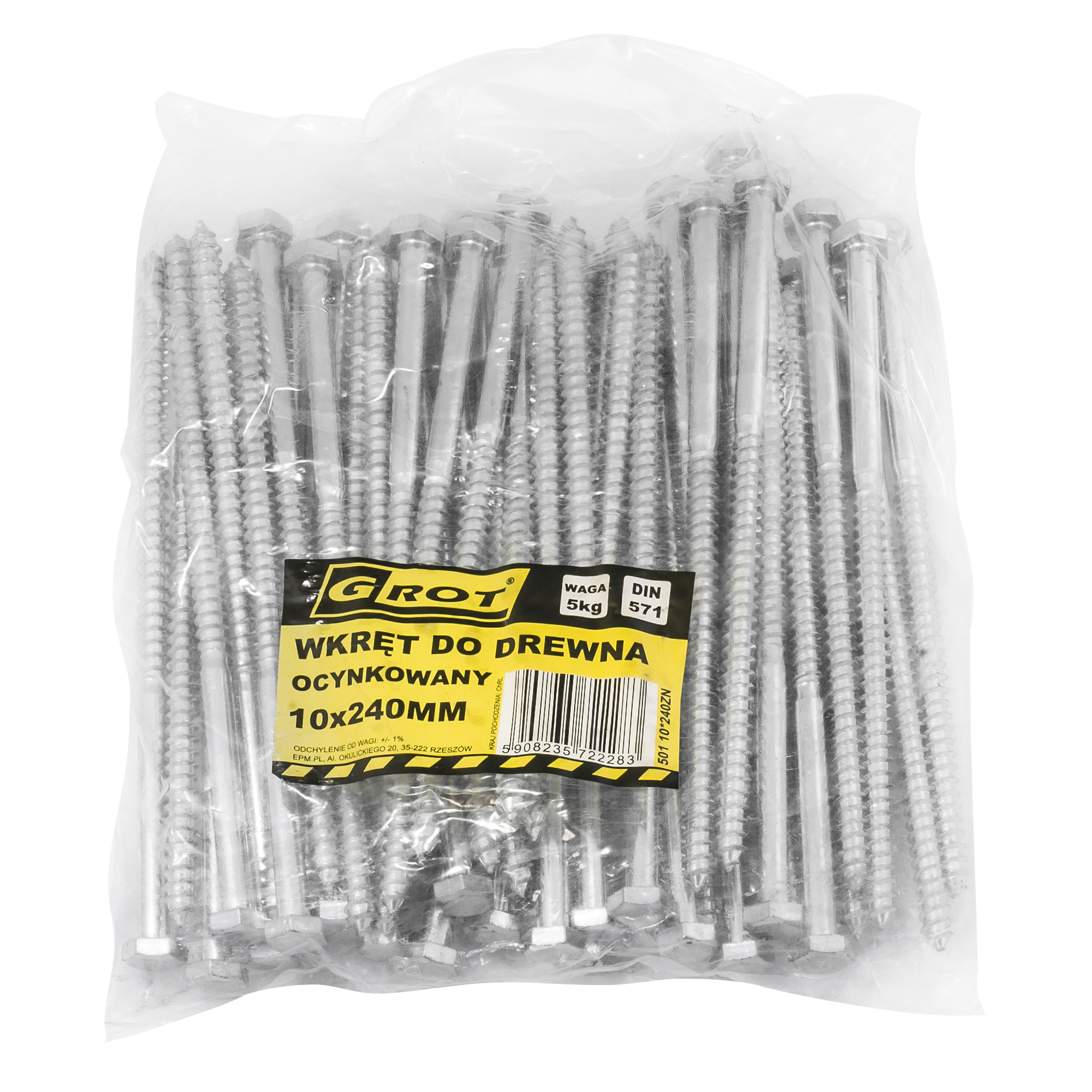 Wkręt do drewna łbem sześciokątnym , 8*160 mm ocynkowany , na klucz 13 mm .