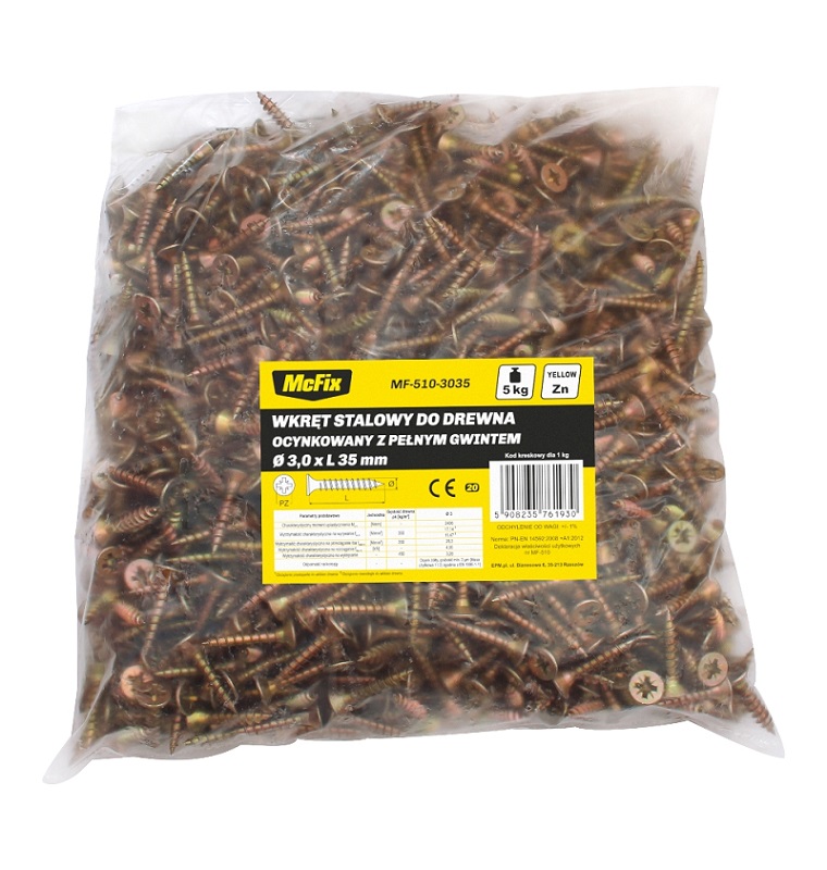 Wkręt stalowy do drewna z pełnym gwintem